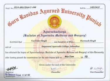 From Dayanand Ayurvedic College Jalandhar, Punjab